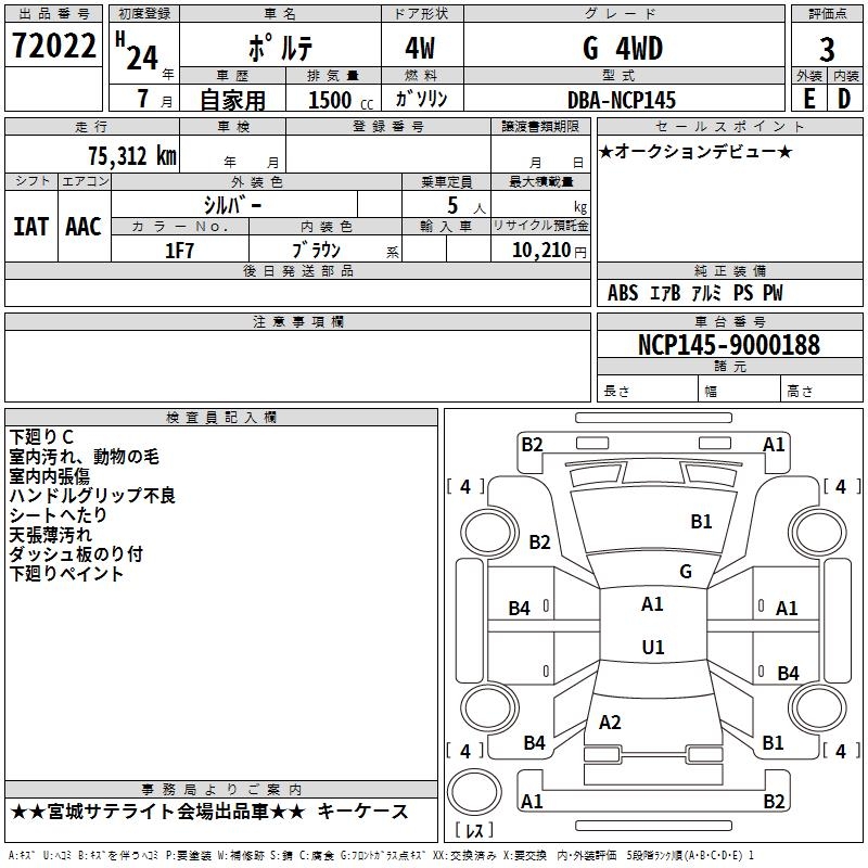 TOYOTA PORTE - лот 72022