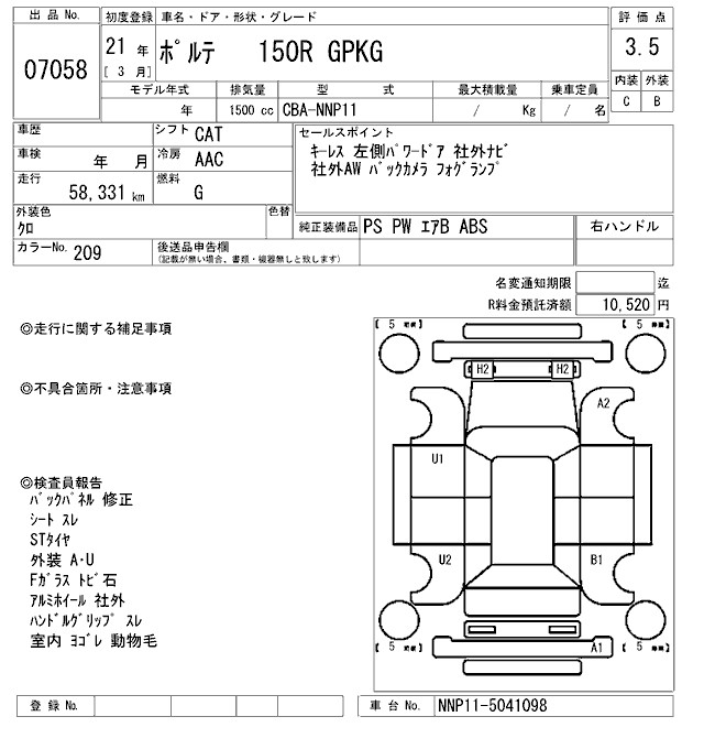 TOYOTA PORTE - лот 7058