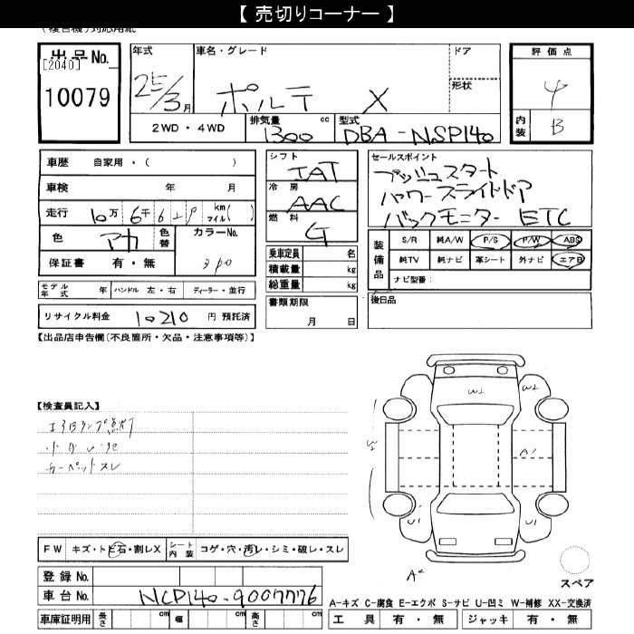 TOYOTA PORTE - лот 10079