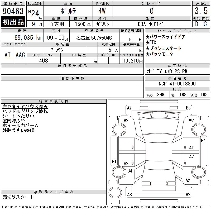 TOYOTA PORTE - лот 90463