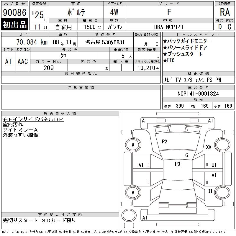 TOYOTA PORTE - лот 90086