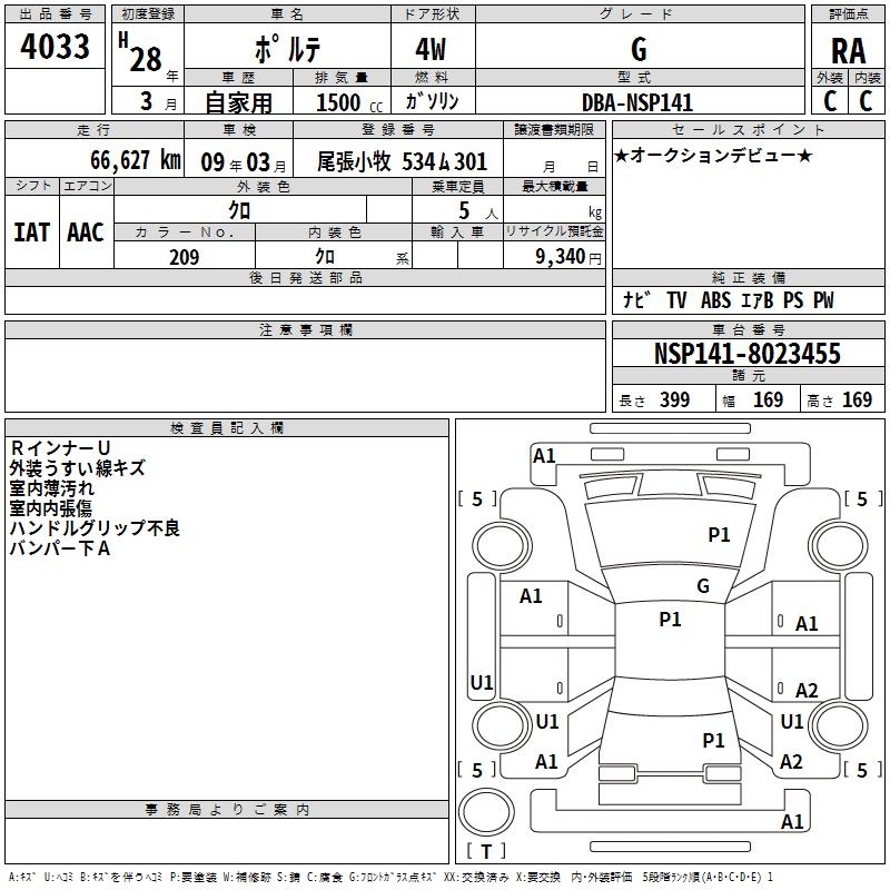 TOYOTA PORTE - лот 4033