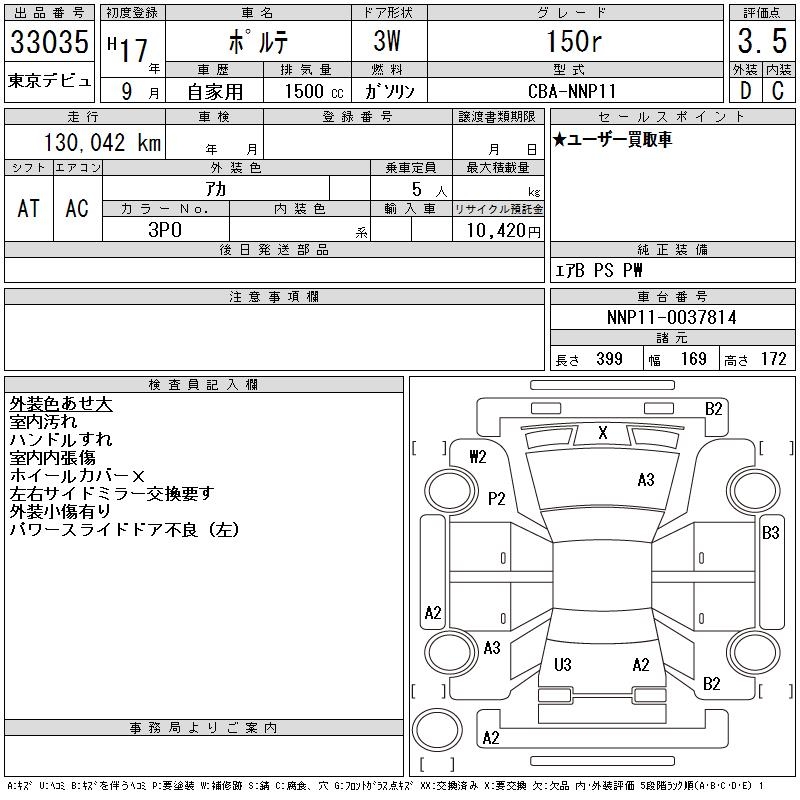 TOYOTA PORTE - лот 33035