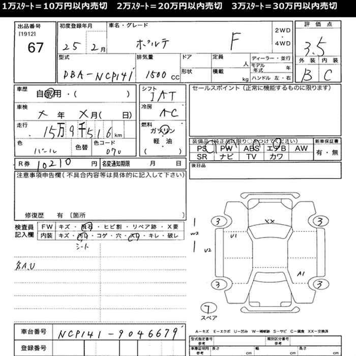 TOYOTA PORTE - лот 67