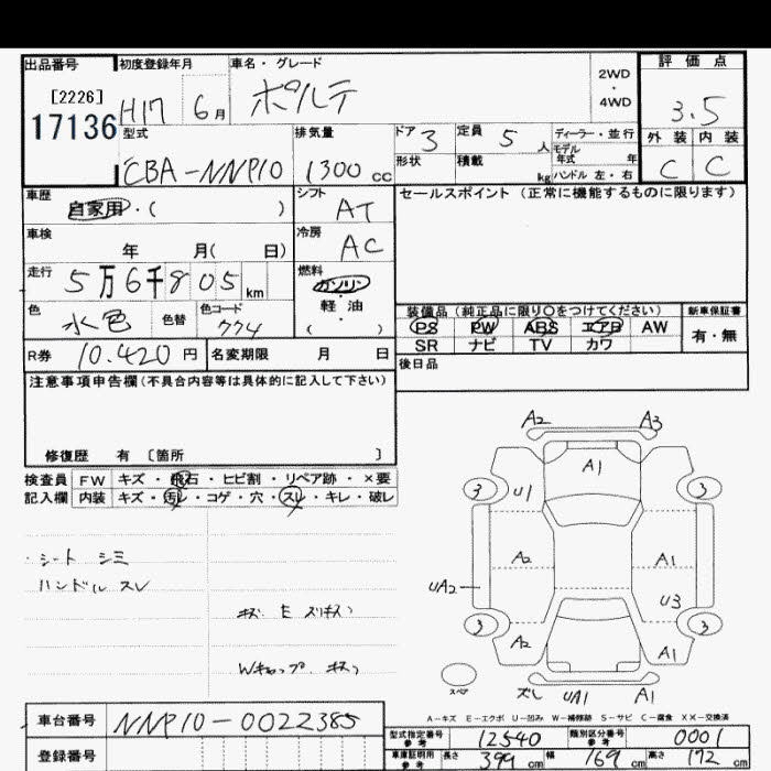 TOYOTA PORTE - лот 17136