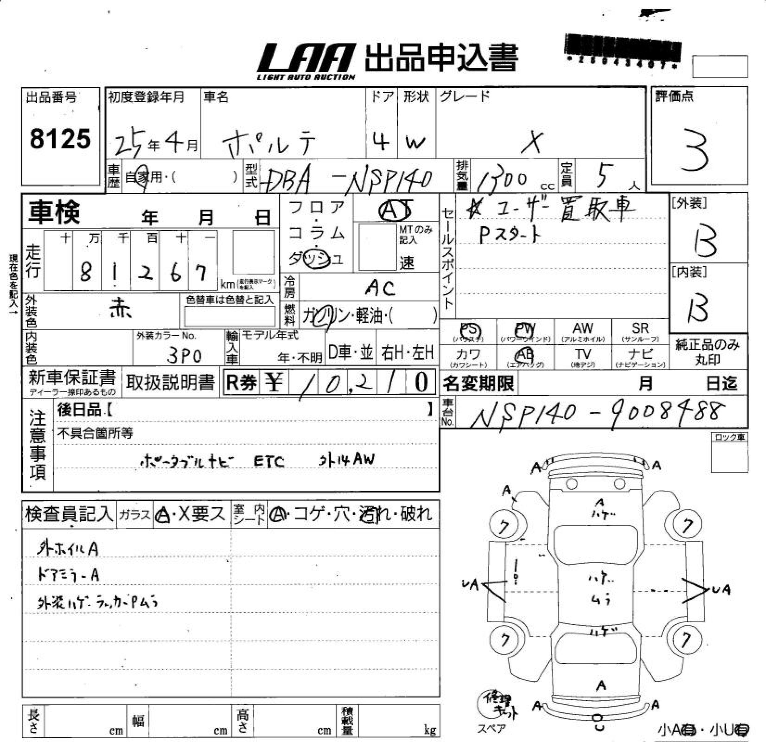 TOYOTA PORTE - лот 8125