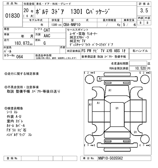 TOYOTA PORTE - лот 1830