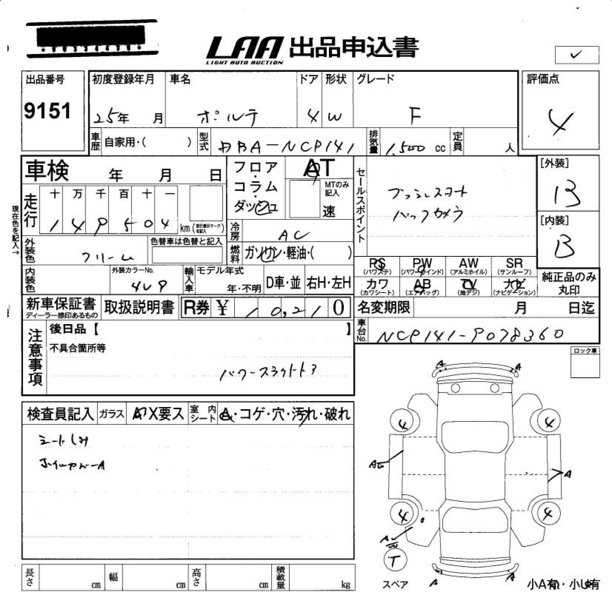TOYOTA PORTE - лот 9151