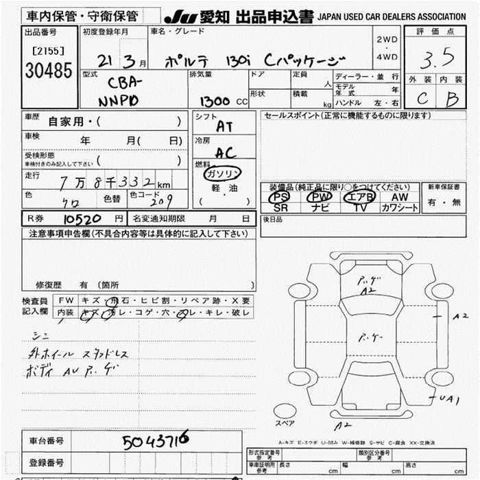 TOYOTA PORTE - лот 30485