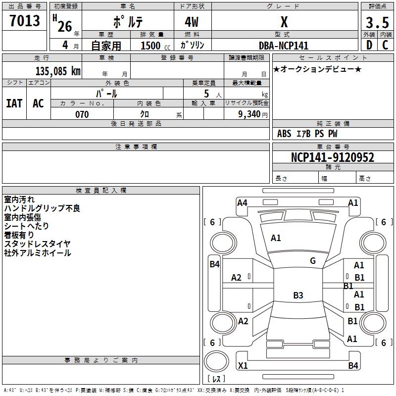 TOYOTA PORTE - лот 7013