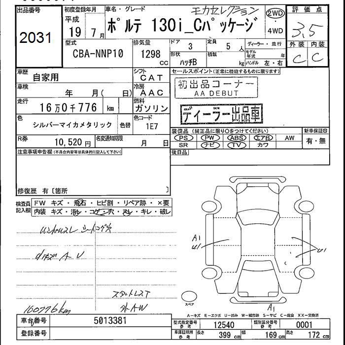 TOYOTA PORTE - лот 2031