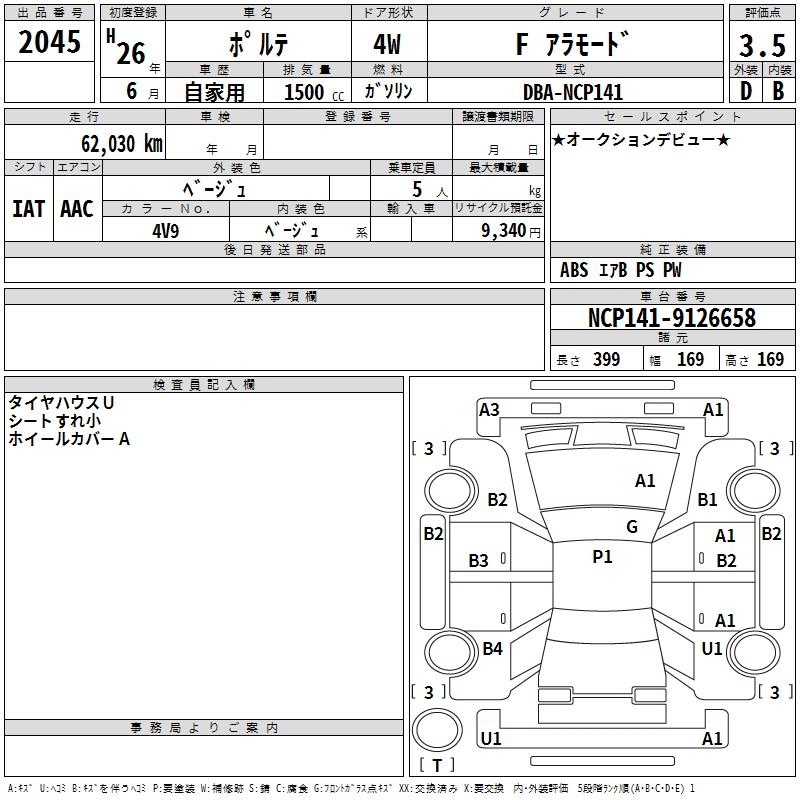 TOYOTA PORTE - лот 2045