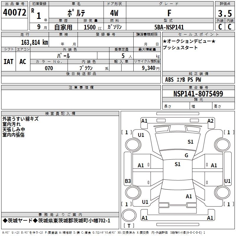 TOYOTA PORTE - лот 40072