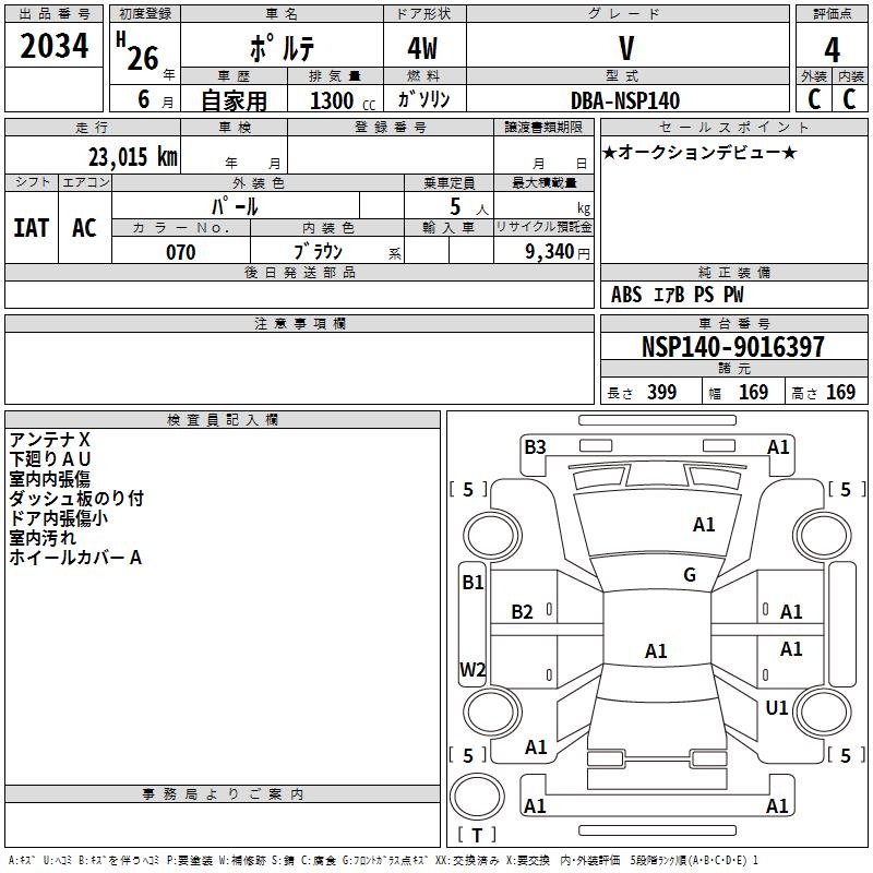 TOYOTA PORTE - лот 2034