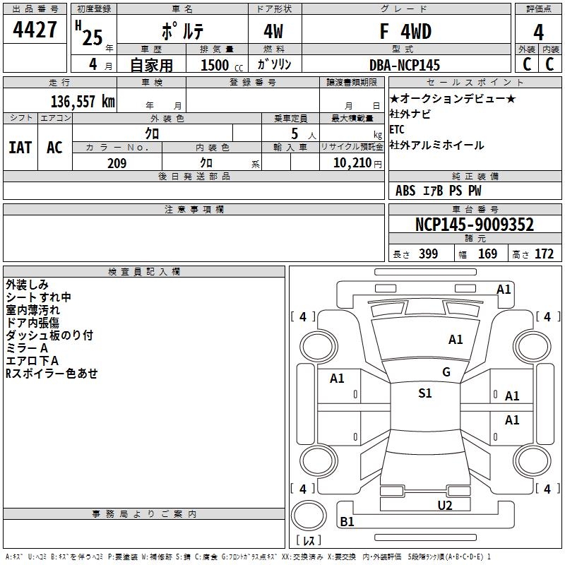 TOYOTA PORTE - лот 4427