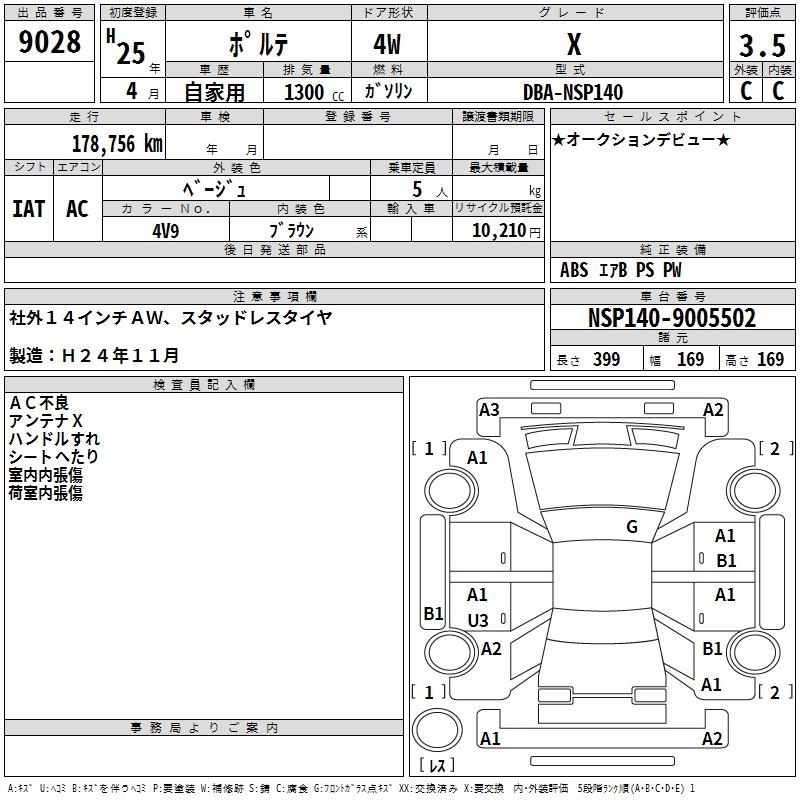 TOYOTA PORTE - лот 9028