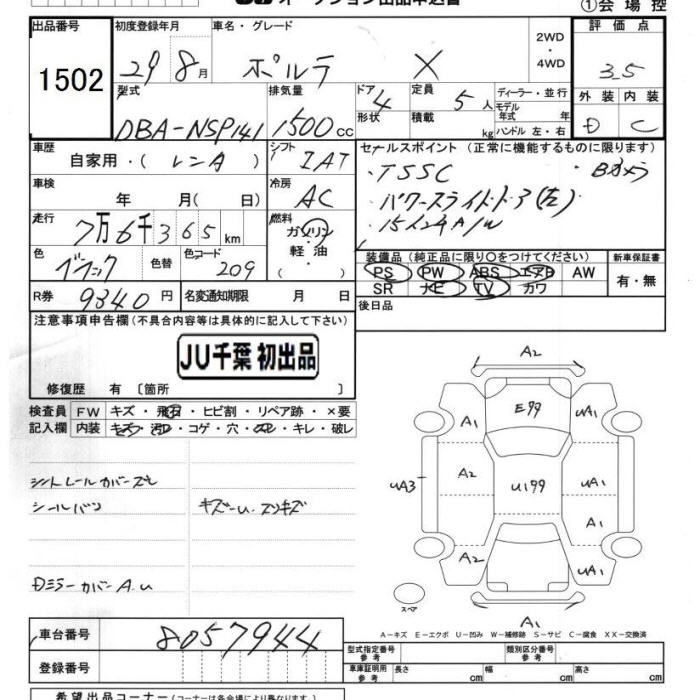 TOYOTA PORTE - лот 1502