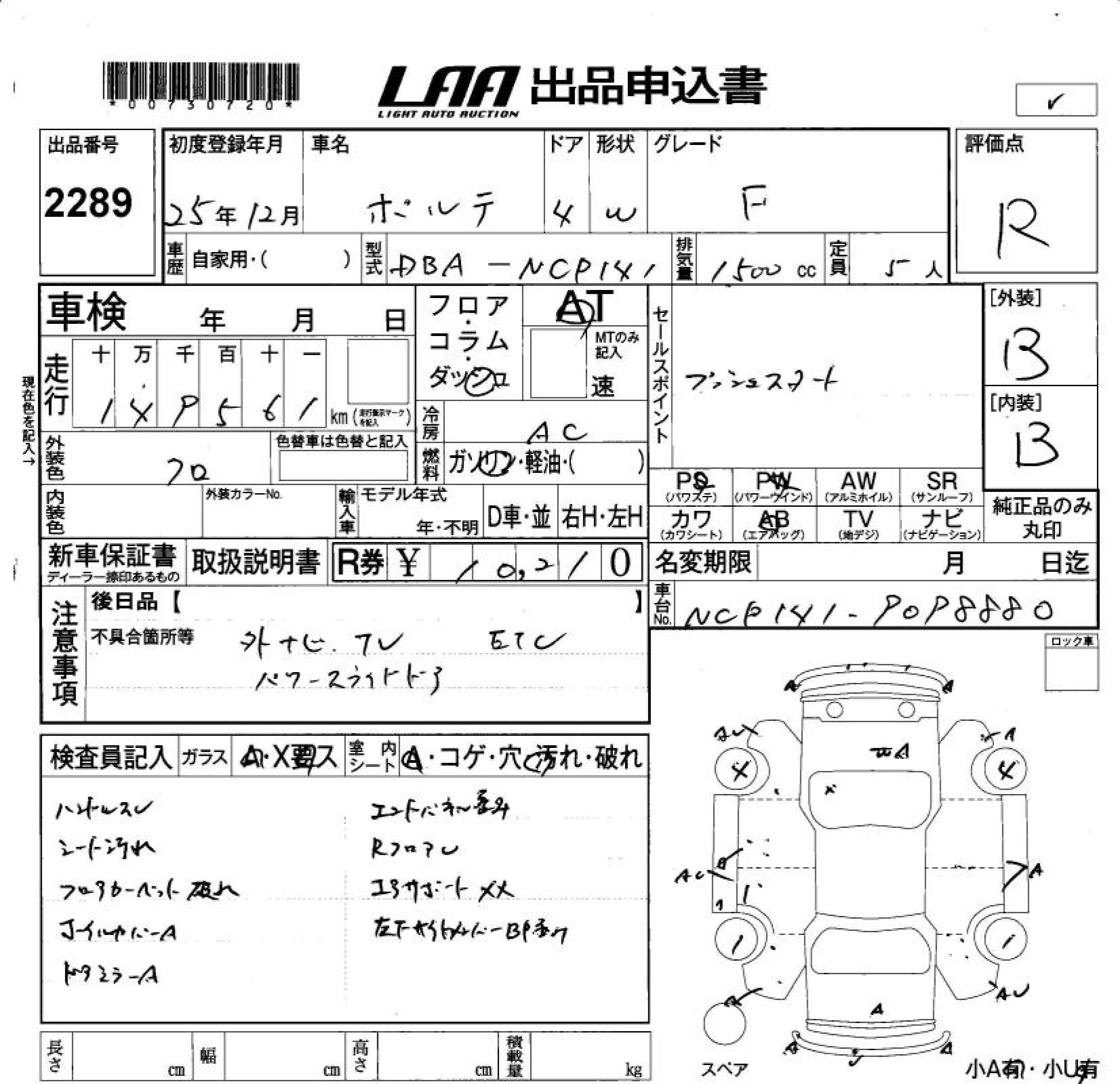 TOYOTA PORTE - лот 2289
