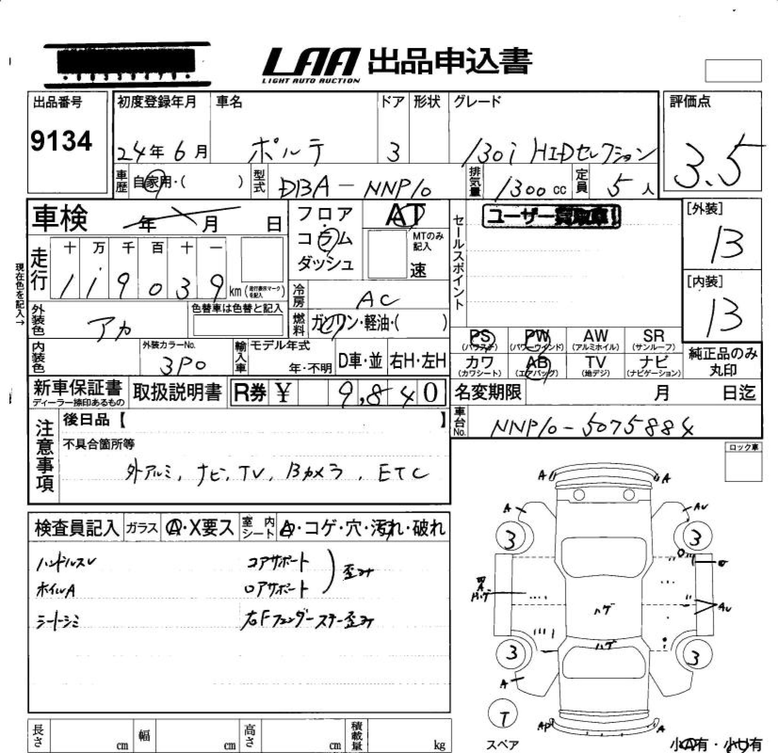 TOYOTA PORTE - лот 9134