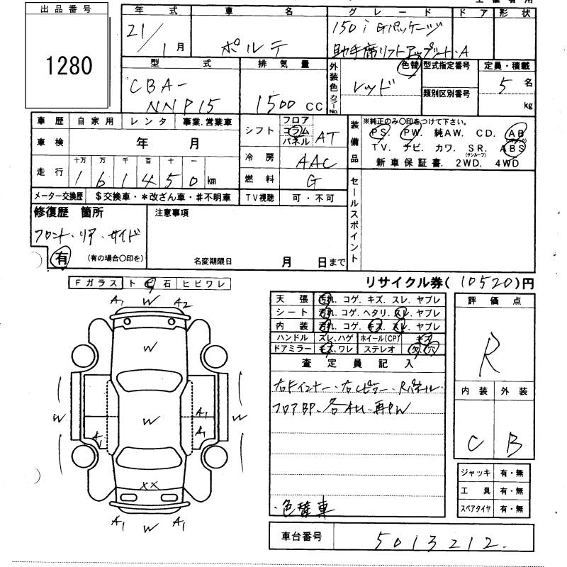 TOYOTA PORTE 150I G PACKAGE JOSHUSE - лот 1280