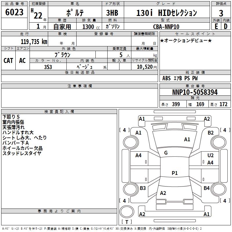 TOYOTA PORTE 130I HID SELECTION - лот 6023