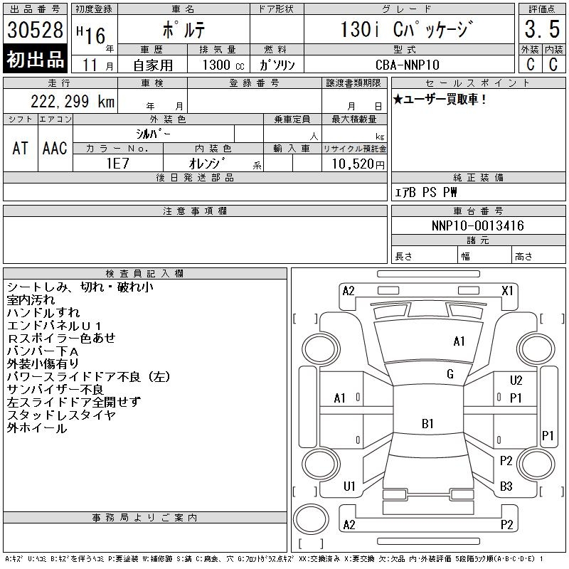 TOYOTA PORTE 130I C PACKAGE - лот 30528