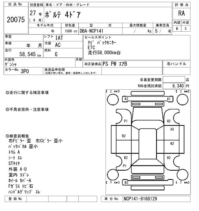TOYOTA PORTE - лот 20075