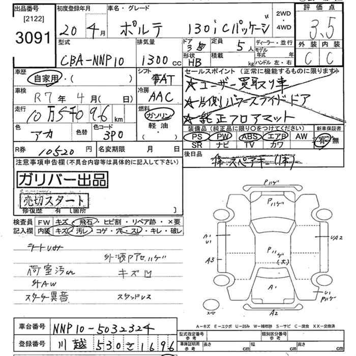 TOYOTA PORTE 130I C PACKAGE - лот 3091