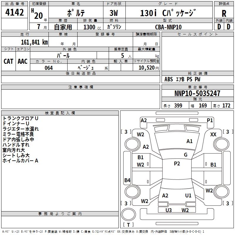 TOYOTA PORTE 130I C PACKAGE - лот 4142