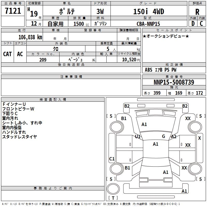TOYOTA PORTE 150i 4WD - лот 7121