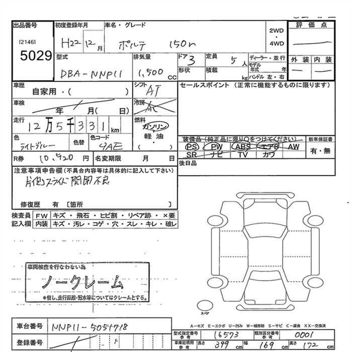 TOYOTA PORTE 150r - лот 5029