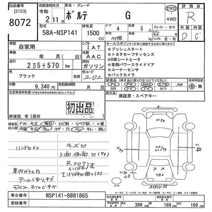 TOYOTA PORTE G - лот 8072