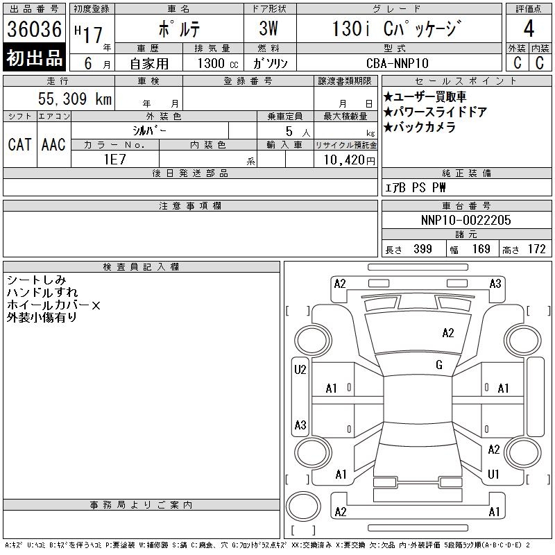 TOYOTA PORTE 130I C PACKAGE - лот 36036