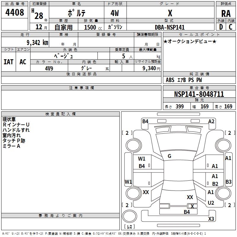 TOYOTA PORTE X - лот 4408