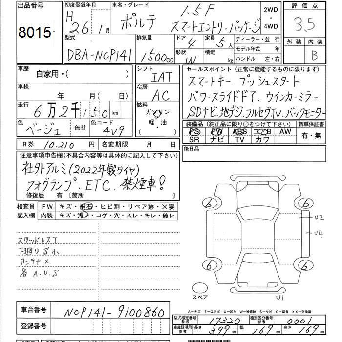 TOYOTA PORTE 1.5F SMART ENTRY PACKAGE - лот 8015
