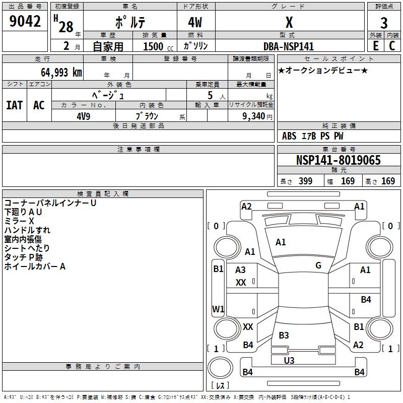 TOYOTA PORTE X - лот 9042