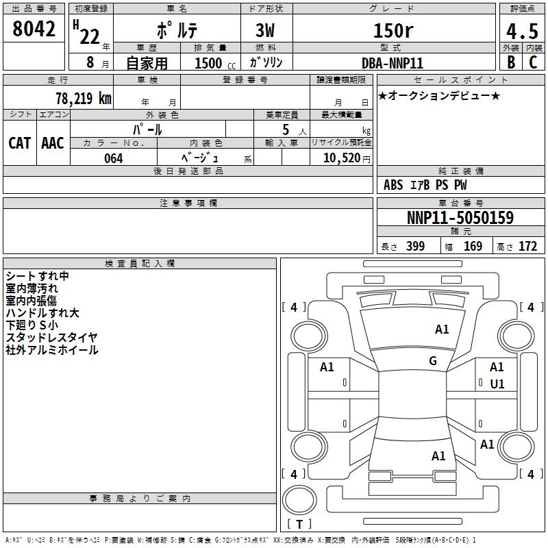 TOYOTA PORTE 150r - лот 8042