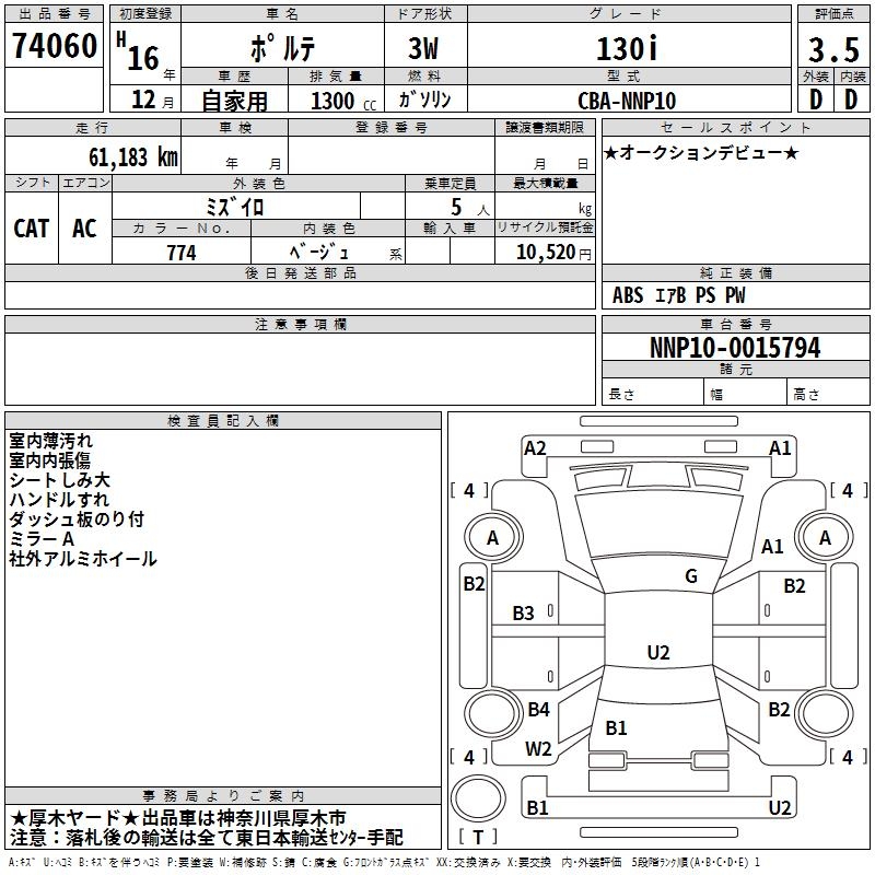 TOYOTA PORTE 130i - лот 74060
