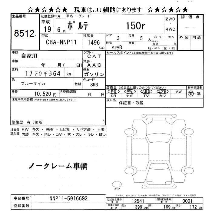 TOYOTA PORTE 150r - лот 8512