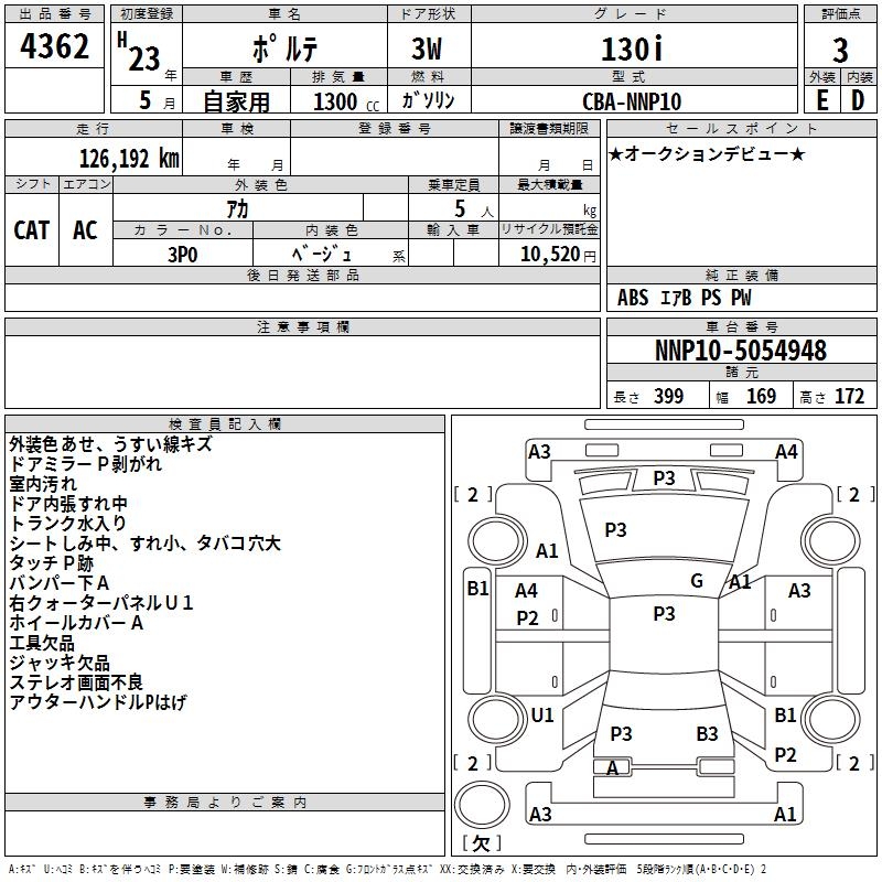 TOYOTA PORTE 130i - лот 4362