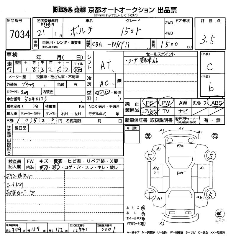 TOYOTA PORTE 150r - лот 7034