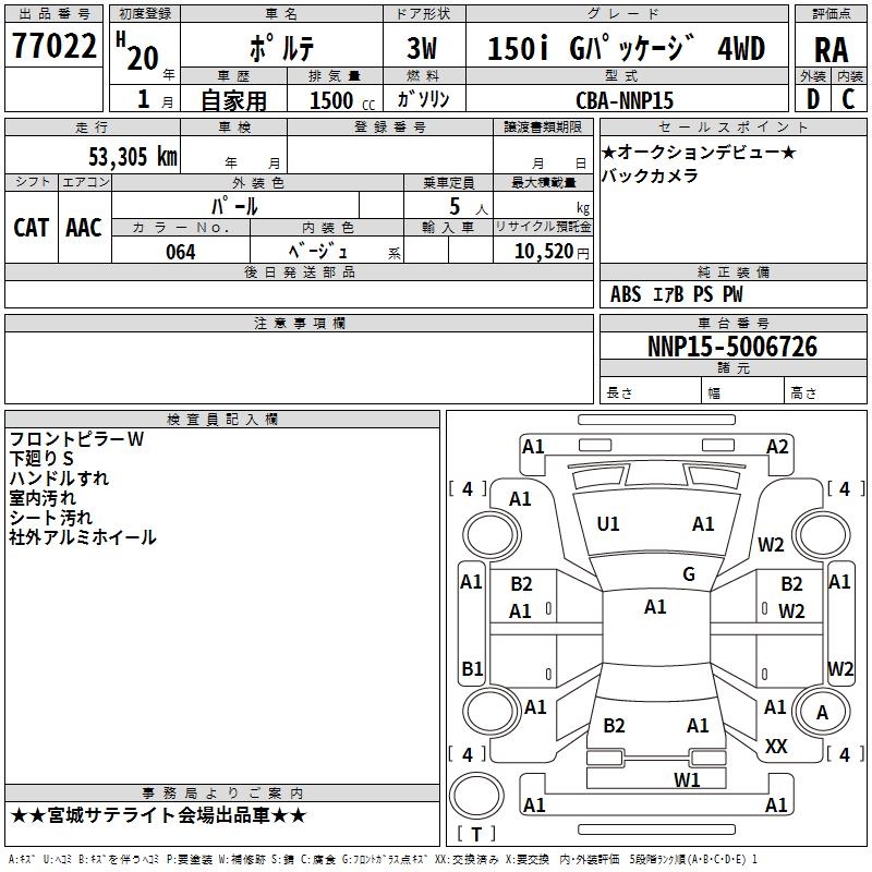 TOYOTA PORTE 150I G PACKAGE 4WD - лот 77022