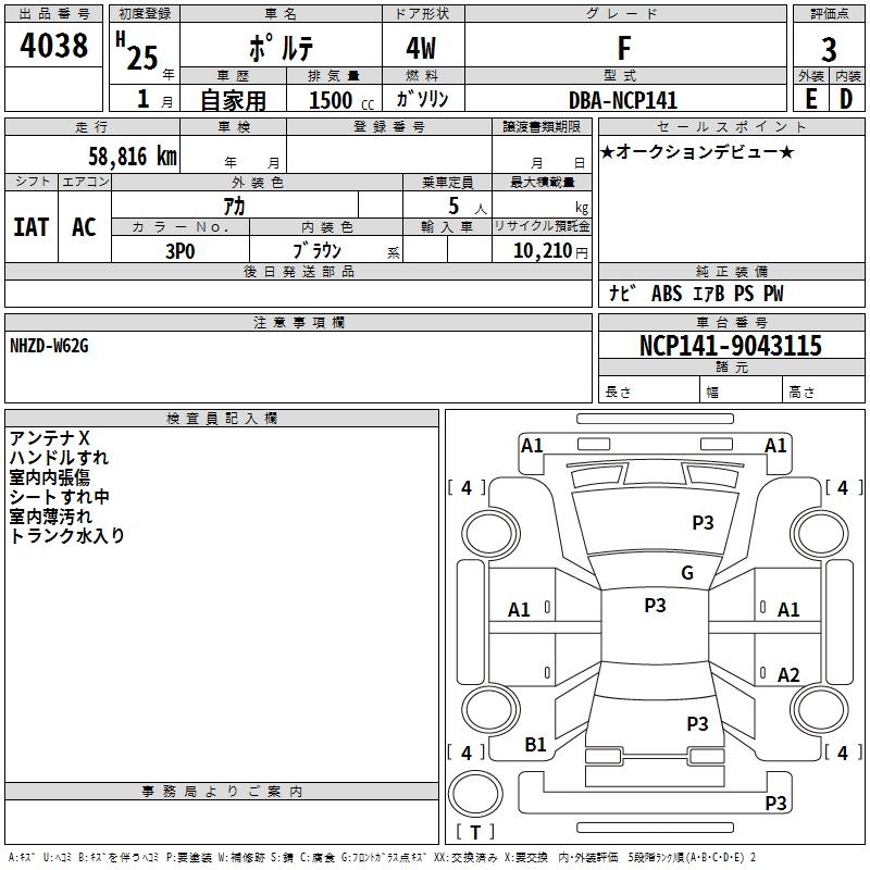 TOYOTA PORTE F - лот 4038