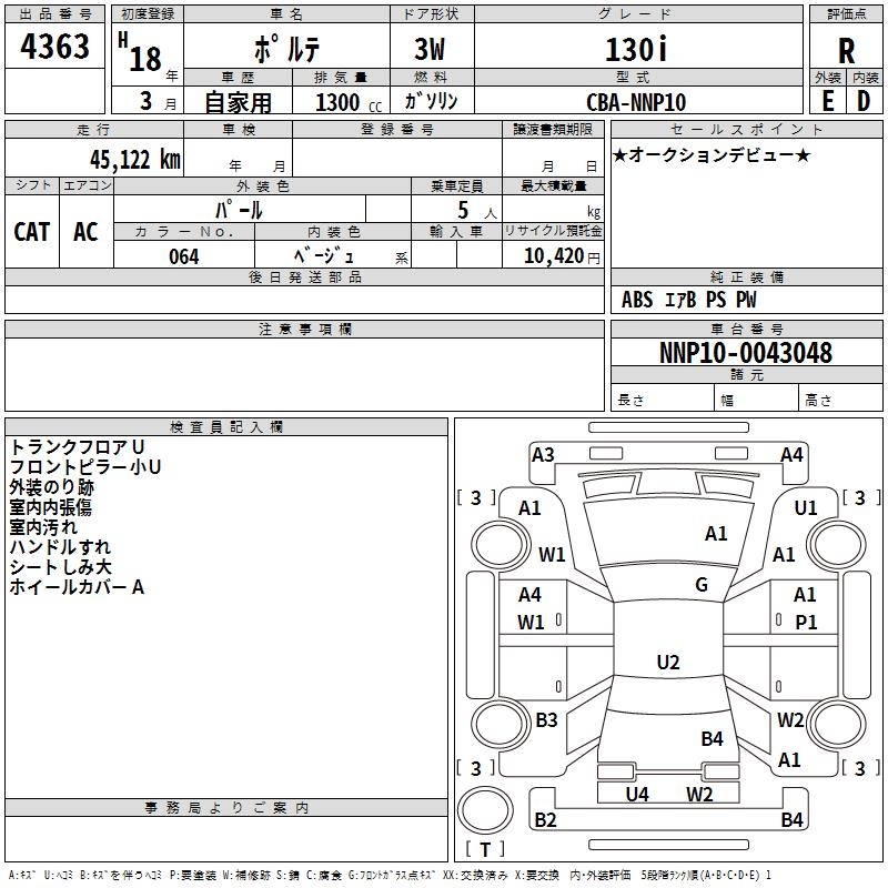 TOYOTA PORTE 130i - лот 4363
