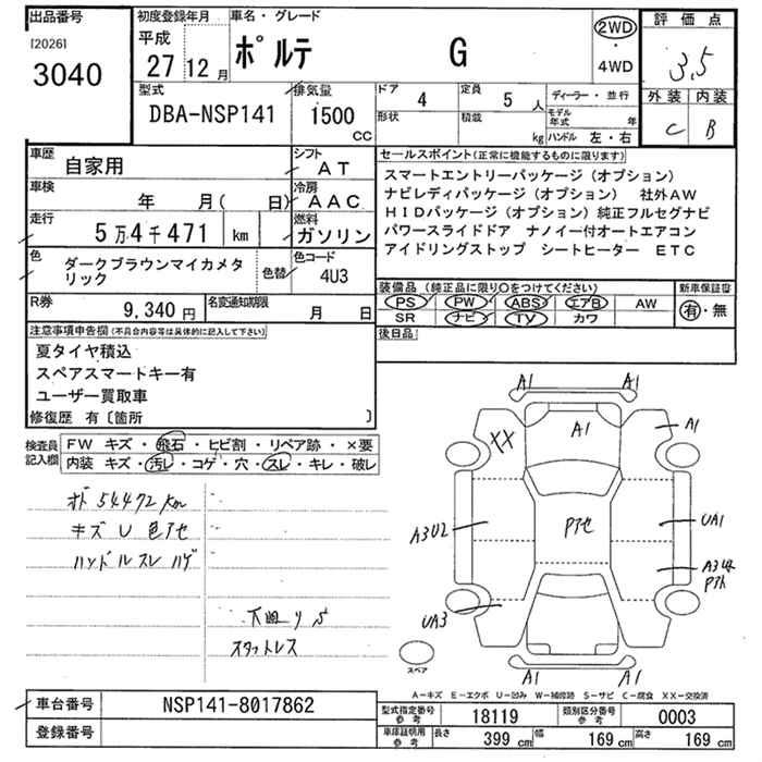 TOYOTA PORTE G - лот 3040