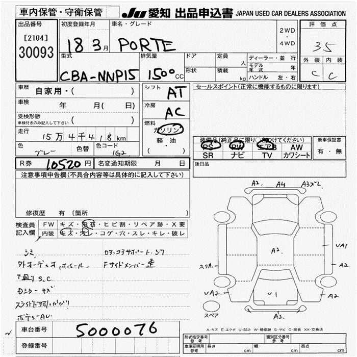 TOYOTA PORTE - лот 30093