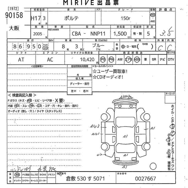 TOYOTA PORTE 150r - лот 90158
