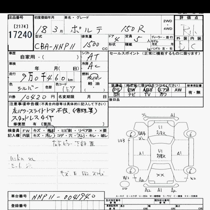 TOYOTA PORTE 150r - лот 17240