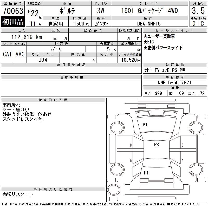 TOYOTA PORTE 150I G PACKAGE 4WD - лот 70063