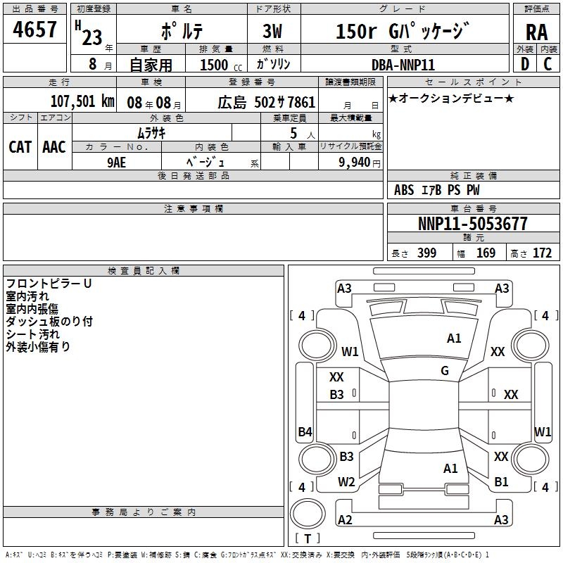 TOYOTA PORTE 150R G PACKAGE - лот 4657